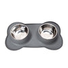 Non-Slip Stainless Steel Double Pet Bowl Set - This durable and convenient pet bowl set is designed to make feeding time easier and cleaner. The two stainless steel bowls are perfect for food and water, while the silicone bone-shaped mat keeps the bowls in place and prevents spills. The non-slip mat ensures the bowls won't move during mealtime, reducing messes on your floor. This set is ideal for both cats and dogs, and the bowls can be easily removed for cleaning.