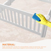 Package Includes: Modular PVC playpen panels, connectors, caps, screws, and assembly instructions.