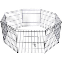 Give your pet the play area it deserves without worrying about it messing up your home. Our 8-panel Pet Playpen is just the answer to let your pet have great fun within a designated area. Made from durable powder-coated steel frames, the 8-panel Playpen can be arranged in a number of ways to suit your pet's play habits. Whether it's an octagon or a square pen, the Playpen easily configures with just simple adjustments. Better still, you can actually get two 8-panel sets and create an expanded play area for your furry friend. And when playtime is over, the Playpen can be easily folded away for storage or travel. Security and safety measures include a bolt latch for the access door, two locks, and safe round edges respectively.